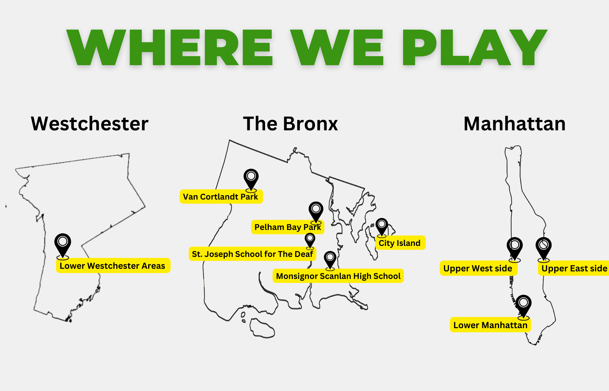 Classes take place in multiple locations in Mnhattan, the Bronx, and Westchester. Find locations here